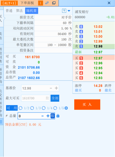 股票交易、融资融券,这两种的下单方式都是普通、算法、随机量,这三种下单方式。