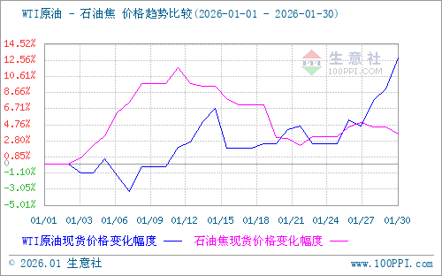 据生意社商品分析系统显示,1月份地炼石油焦行情先涨后跌,整体小幅上涨,国内主要地炼厂家石油焦中硫产品主流均价1月30日为2691.75元/吨,较1月1日为2598.25元/吨,整体上涨3.6%。