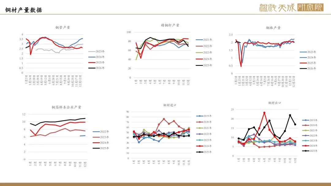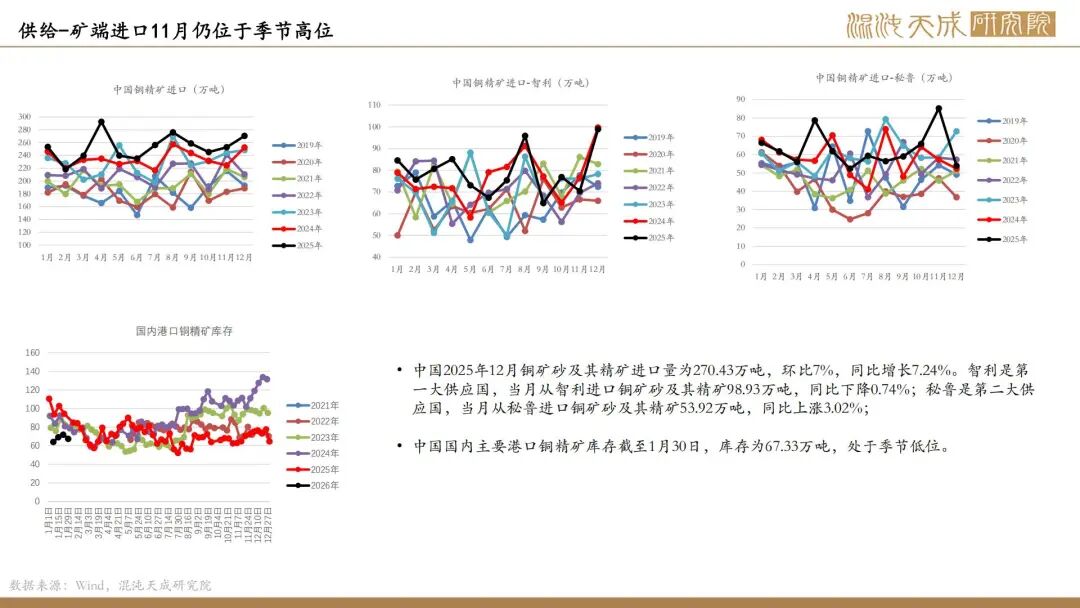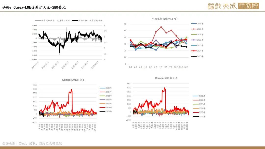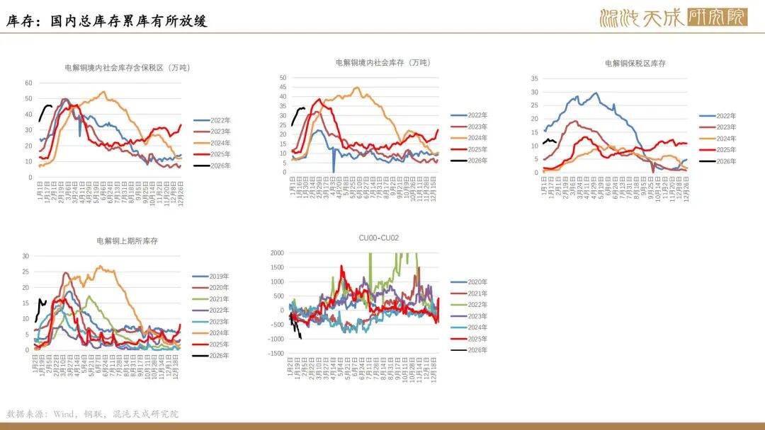 需求端,全球显性库存开始出现回升,LME开始累库,Comex库存高位震荡;截止1月29日国内市场电解铜现货库存33.58万吨,较22日增0.06万吨,较26日降0.56万吨;周内整体维持累库,但幅度有所放缓,节前下游企业采购需求难有提升,但随着到货量有所下行,整体维持小幅累库的情况。
