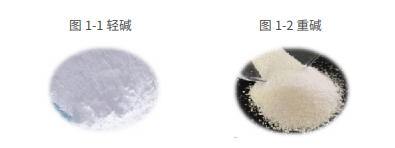 根据密度的不同,纯碱主要分为轻质纯碱(简称轻碱)和重质 纯碱(简称重碱),其化学成分都是碳酸钠,但物理形态不同:轻 碱密度为500-600kg/m3,呈白色结晶粉末状;重碱密度为1000- 1200kg/m3,呈白色细小颗粒状。与轻碱相比,重碱具有坚实、颗 粒大、密度高、吸湿低、不易结块、不易飞扬、流动性好等特点。 此外,也有超轻质纯碱和超重质纯碱,密度分别为370kg/m3左右 和1550-2553kg/m3。