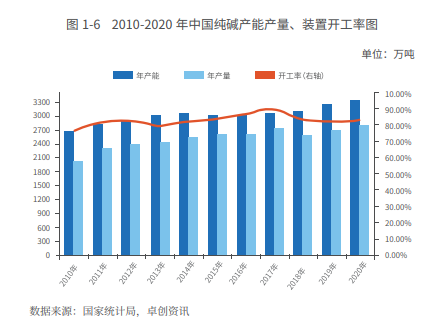 我国纯碱产能与产量