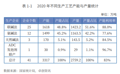 不同生产工艺纯碱产能产量