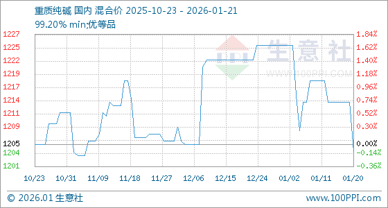 1月21日生意社重质纯碱基准价为1204.29元/吨