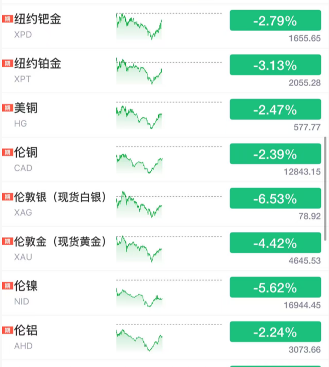 好的一面是,咱们这边收盘之后,外围市场稍微回暖,包括国际黄金白银在内的多种贵金属的价格,跌幅已经有所收窄。