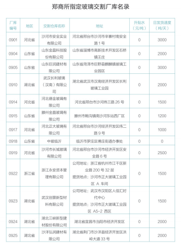 玻璃期货指定交割厂库