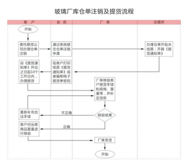 玻璃期货仓单注销时,交易所结算部门办理仓单升贴水结算,交易所交割部门开具《提货通知单》。
