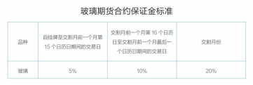 玻璃期货合约的最低交易保证金标准为期货合约价值的5%。