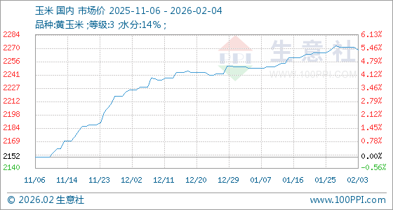 2月4日生意社玉米基准价为2268.57元/吨
