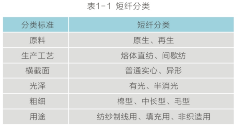 根据不同的分类标准,短纤可以分为不同的类别,如表所示。