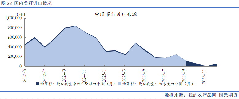 1)国内进口菜籽供应有所收窄