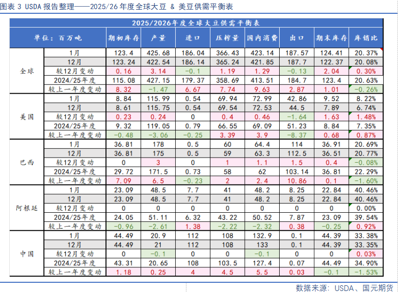 1)USDA1月报告中性偏空,基本维持美豆丰产思路