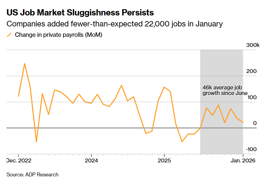 黄金多头们的福音!美国1月“小非农”远低于预期招聘“急刹车”点燃降息预期