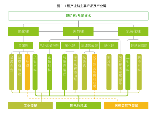 碳酸锂应用广泛,现阶段主要用途为制备锂电池材料,锂电池按应用领域可分为新能源汽车动力电池、消费电子电池、储能电池。其余应用领域为玻璃陶瓷、医药、润滑脂等传统行业。锂电池方面,碳酸锂的下游产品可分为正极材料、电解液和负极材料。