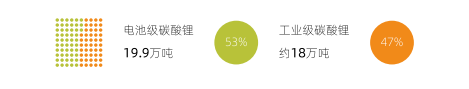 从产量来看,电池级碳酸锂和工业级碳酸锂的产量分布较为平均,前者略多一些。据上海有色网统计, 2022年电池级产品产量约19.9万吨,占53%;工业级产品产量约18万吨,占47%。