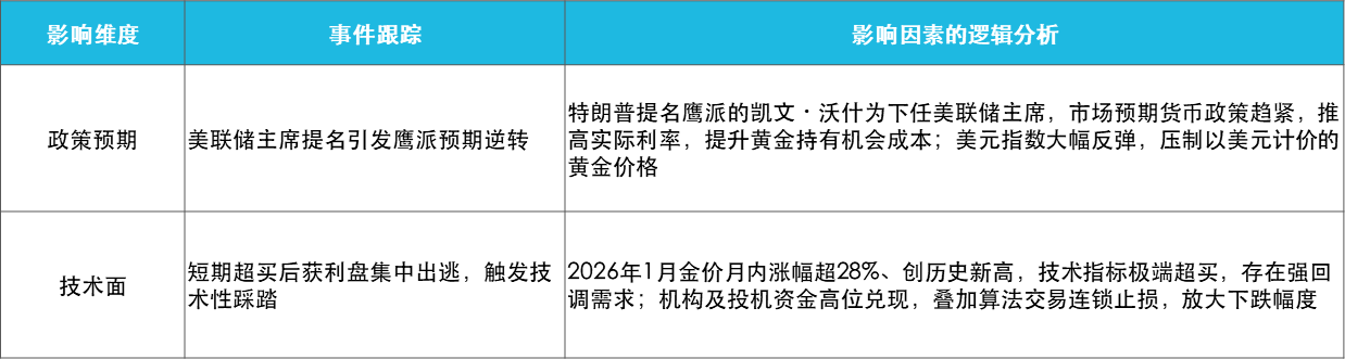 另一方面,市场交易行为放大了震荡幅度。前期黄金抛物线式的上涨,积累了大量浮盈盘与杠杆仓位,而在交易约束收紧的背景下,这些高位仓位集中出清,叠加算法交易止损引发的技术性踩踏,进一步放大了金价的回撤幅度,让短期震荡更为剧烈。
