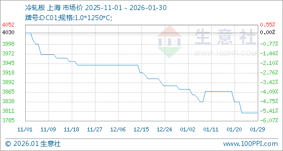 1月30日生意社冷轧板基准价为3807.50元/吨