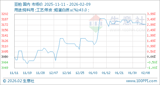 2月9日生意社豆粕基准价为3174.00元/吨