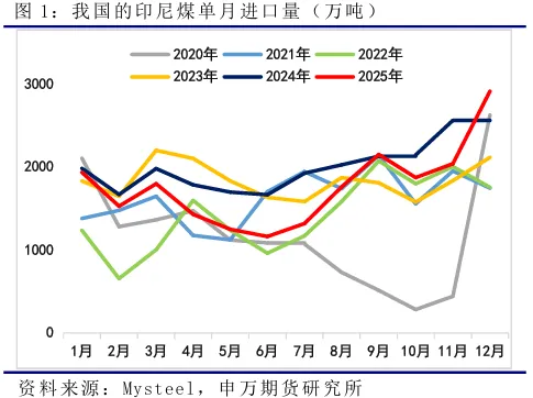 海关总署数据显示,2025年我国累计进口煤炭4.90亿吨、同比下降9.65%,其中自印尼进口煤炭2.11亿吨、同比大幅下降12.3%,降幅高于整体进口水平。印尼煤进口量收缩,主要受国内供给充裕与海外成本扰动双重因素影响:一方面,国内原煤产量维持高位,压制了进口需求;另一方面,印尼政府于2025年3月推出的HBA(煤炭基准价)强制定价新规,显著增加了贸易的不确定性与成本。
