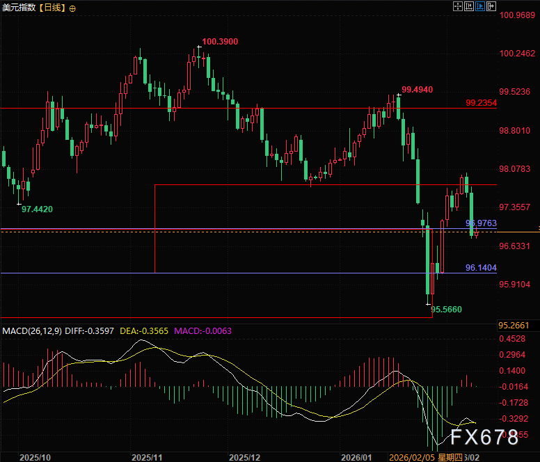 技术面显示,美元指数周一经历了下跌,很大概率下跌即是对非农数据下修以及劳动力数据疲软的反应,如果非农数据大幅低于预期,美元指数还有回落的可能,支撑位在96.15左右,但如果非农数据符合预期或者小幅低于预期,美元指数大概率当天出现阶段的低点。