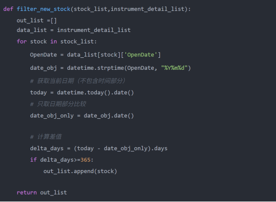 3、过滤次新股上市不足1年的直接去掉