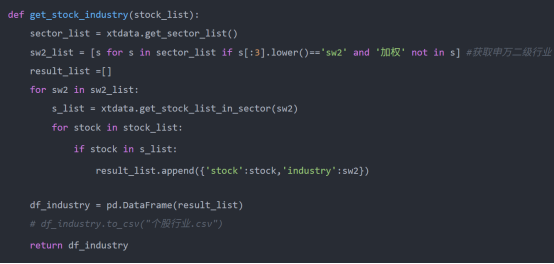 这里分了2步写的,首先是获取股票对应的申万二级行业