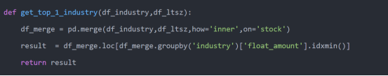 最后我们用result = df_top1_industry.nsmallest(stock_count, 'float_amount')获取市值最小的N个股票用于交易。