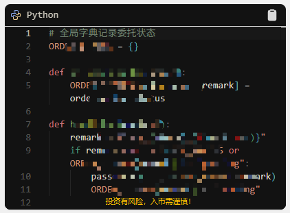 对关键变量(如委托ID、持仓状态)使用全局字典管理;