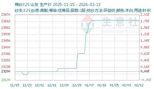 本周棉花市场窄幅震荡、成交重心小幅上移,纯棉纱线价格稳定。截至2月13日,国内山东地区21S纯棉环锭纺现货价格参考22200元/吨左右,与上周持平;32S纯棉环锭纺现货价格考在23600元/吨左右,与上周持平。