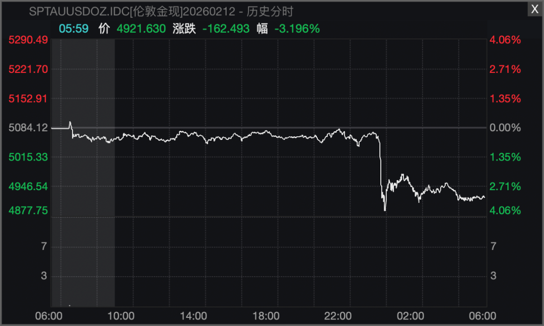 国际现货黄金跌超3%,报4921.63美元/盎司;现货白银跌超10%,报75.224美元/盎司。