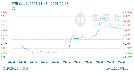 2月16日生意社沥青基准价为3210.00元/吨