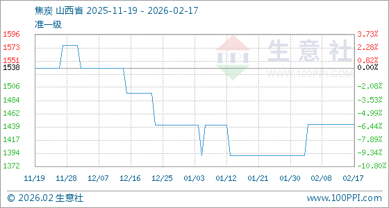2月17日生意社焦炭基准价为1443.75元/吨