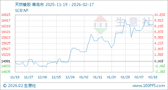 2月17日生意社天然橡胶基准价为16283.33元/吨