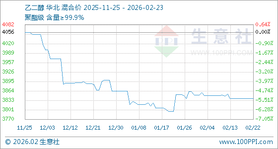2月23日生意社乙二醇基准价为3838.33元/吨