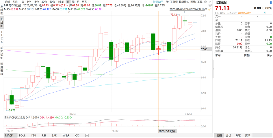在地缘冲突溢价持续“常态化”的当下,春节后(即2月下旬至3月)的原油价格将进入高波动、高风险、高敏感的“三高”阶段。短期(未来一周)预计成为战争窗口期的博弈期,市场高度聚焦于2月23日至24日这个被媒体爆出的“打击窗口期”。如果在此窗口期内美军真的发动打击,哪怕规模有限,布伦特油价也可能迅速冲破关键阻力位,向上测试更高区间。如果窗口期内美国没有动手,而是重回谈判(尽管可能性在降低),市场可能会因“暂时避险情绪消退”而出现部分多头获利了结,导致油价技术性回调。