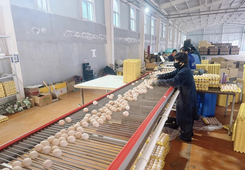 为保障春节期间鸡蛋供应,建行河北武安支行工作人员走访佳美农业开放有限公司,了解生产情况和融资需求。图为该公司鸡蛋分拣车间。