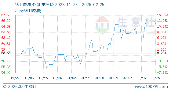 2月25日生意社WTI原油基准价为66.31美元/桶
