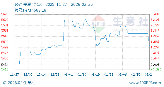 2月25日生意社锰硅基准价为5504.00元/吨