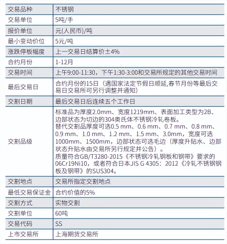 上海期货交易所不锈钢期货合约