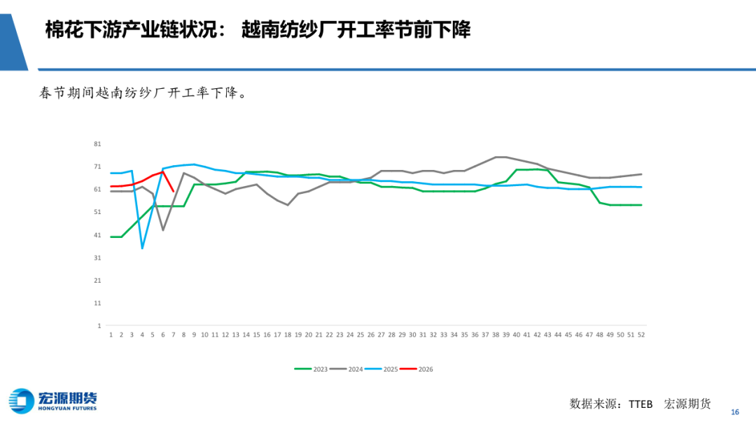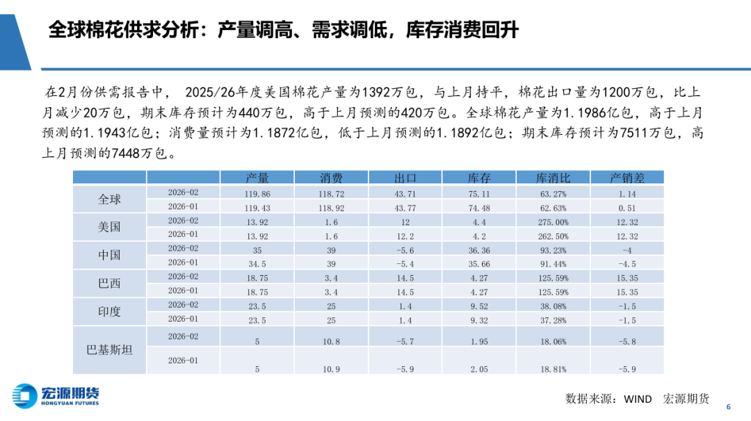 春节假日期间,ICE 中幅上涨,累计涨幅为 2.13%,主要因美国有可能打击伊朗刺激原油期货大涨,美国联邦最高法 院 20 日裁定特朗普政府大规模关税措施违法后有望减少输美商品关税,但由于特朗普有可能再次将关税调整至 15%,比之前 10%再增加 5%,关税水平反而比节前再提高,具体实施情况预计很快将揭晓。节后第一天,内外棉花继续上涨,郑棉突破15000元阻力关口。