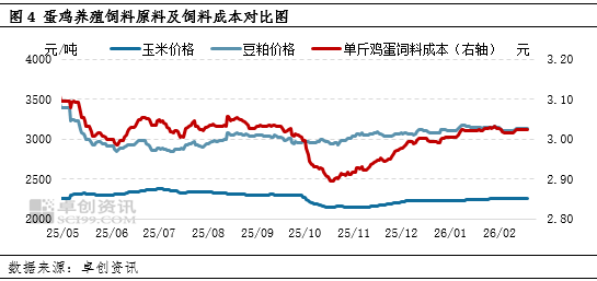 根据卓创资讯监测数据显示,2026年2月蛋鸡养殖由盈转亏,成本稳定与收入大幅缩减形成强烈反差。3月蛋鸡养殖成本和收入预期双增,蛋价回升或主导市场,养殖盈利有望实现扭亏为盈。