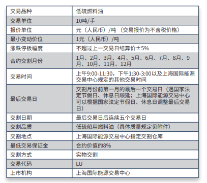 用于实物交割的低硫船用燃料油,质量应当符合上海国际能源交易中心低 硫燃料油质量标准。低硫船用燃料油是指由石油制取的烃类均匀混合物,不排除 为改善低硫船用燃料油的某些性能和特点而加入的添加剂。低硫船用燃料油应不 含无机酸和使用过的润滑油,不能含有可能导致船舶使用异常的任何物质。低硫 船用燃料油中不应人为加入可能产生危及船舶安全或对机械操作性能产生不利影 响、损害身体健康、增加空气污染的任何添加物或化学废料。