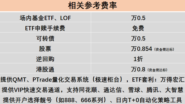 对于ETF套利的投资者来说,选择一家ETF申赎手续费为0、佣金万0.5的证券公司开户交易,长期可以节约大量的交易费用成本。