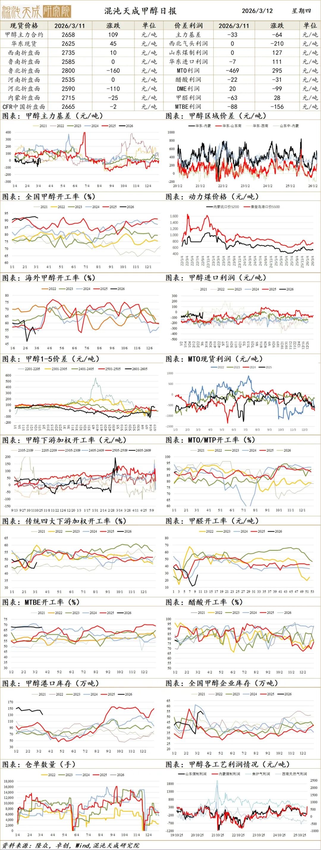 结论:伊朗地缘战争爆发后,通过直接供应影响及能源成本抬升驱动。甲醇格局上,伊朗不重启,MTO不停车,港口就会大幅去库。目前下游跟随原油涨价后,利润修复,预计甲醇偏强震荡。