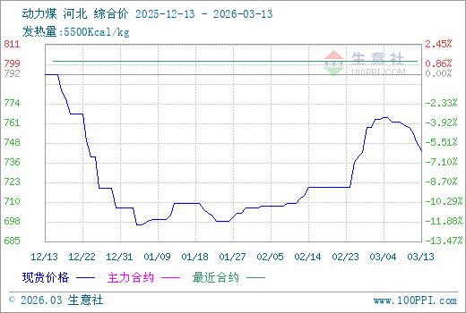 3月12日生意社动力煤市场基差为-52.65元/吨