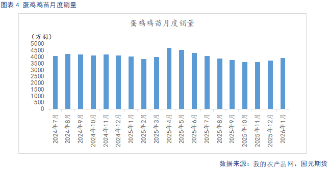 从新开产蛋鸡来看,3月新开产蛋鸡数量对应2025 年10-11月补栏鸡苗,据我的农产品网数据显示,10-11月蛋鸡苗销量为3588万羽、3603万羽,较9-10月低位小幅回升,3月新开产蛋鸡数量预计将小幅回升,叠加产蛋率、蛋重季节性回升,整体供应压力缓解程度有限。并且,2025年12月鸡苗销量进一步回升至3725万羽,对应4月后新开产蛋鸡将逐步增加,产能去化节奏或进一步放缓。