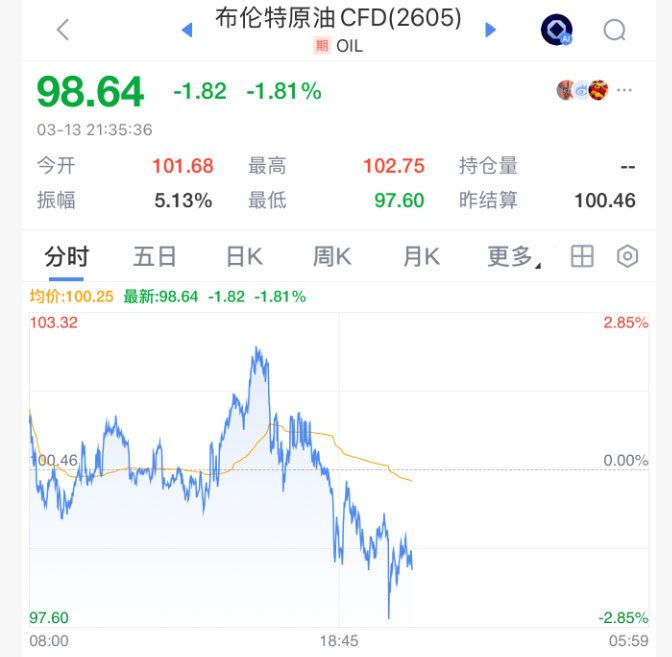 兄弟姐妹们啊,今晚霍尔木兹海峡以及中东战事又有新的消息,导致国际油价开始跳水,欧美股市集体上演“V形”反转,富时中国A50指数期货一度涨1%!