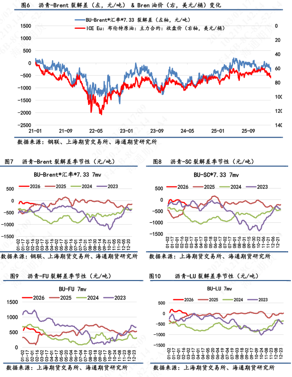 【4】短期来看,沥青绝对价格依旧跟随成本端走势,其在地缘波动剧烈下价格也容易被推涨。鉴于燃料油更为与伊朗局势牵连,沥青的涨幅不及燃料油激烈。短期依旧看地缘做近月,地缘深化预期强烈下价格偏强运行。随着下游道路施工需求良好,市场销货情绪增加,然而在地缘持续僵持不下,使得中东重油(沙特重油、伊拉克重油)出口受阻,委内油风险变量或依旧是国内沥青炼厂必不可少需要解决的问题,意味着择取的卖家替代方案减少,尽管更为优质替代来源于加拿大原油。
