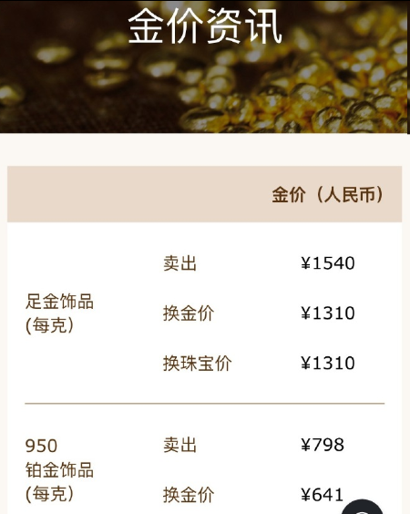 国内金饰克价跌到1540元