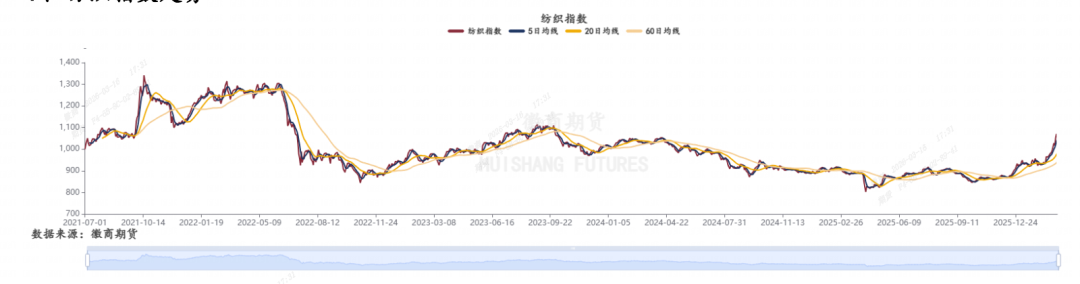 其他板块涨跌幅如下,油脂指数下跌0.22%,黒\链指数上涨0.87%,石油指数上涨1.3%,纺织指数上涨3.51%,有色指数下跌2.03%,农产品指数上涨0.33%,能化指数上涨1.95%,中间品指数上涨4.4%。