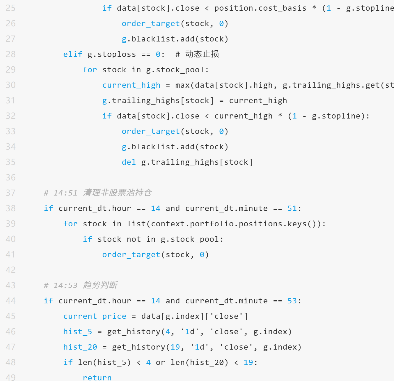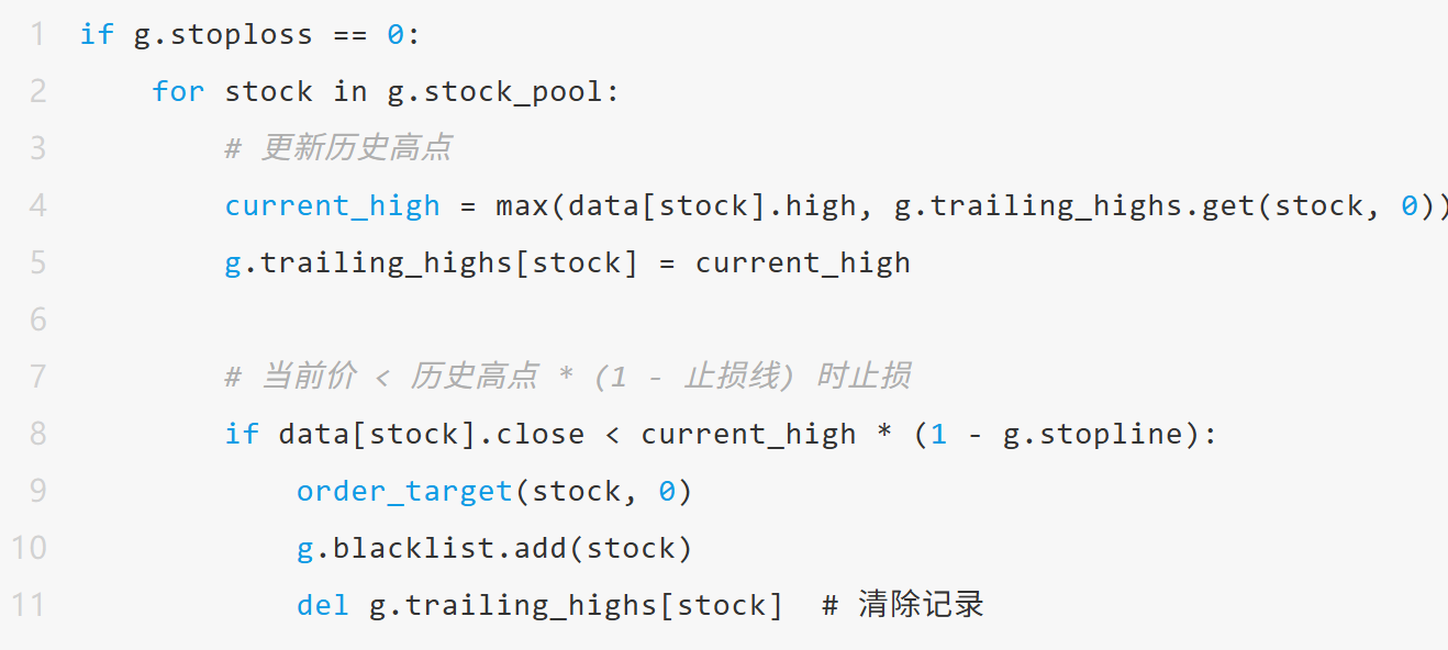 l 动态止损:跟踪历史高点,回撤超过阈值时止损(如从最高点回撤5%)。